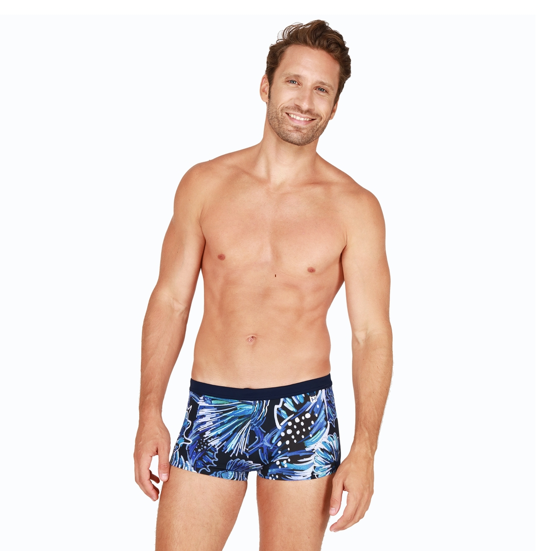 - L’élasthanne apporte à ce shorty de bain élasticité et confort.
