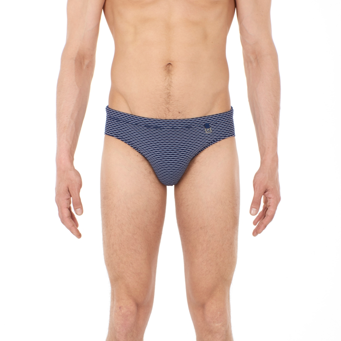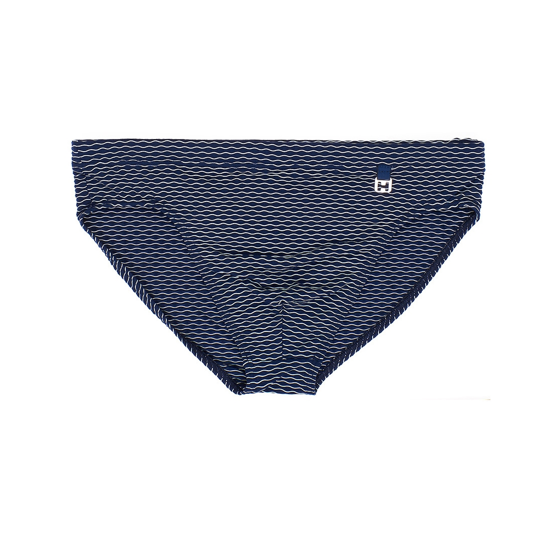 HOM s’inspire de la mer pour la ligne EQUINOX. Découvrez le slip de bain pour homme en lycra jacquard avec un effet de rayure blanche sur fond bleu marine en forme de vagues.