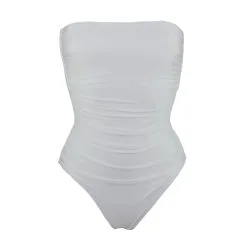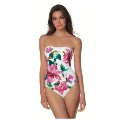 ROIDAL Maillot Bustier Une Pièce Fleuri Fond Blanc Romantic