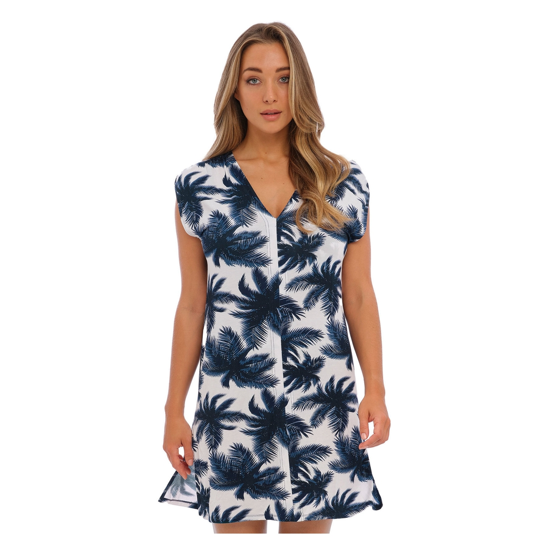 Parfaite pour passer de la plage au bar, la Tunique Carmelita Avenue vous permet de rester au frais grĂące Ă son tissu lĂ©ger fendu sur les cĂŽtĂ©s. Les palmiers en French navy qui sâĂ©tendent sur un fond blanc immaculĂ© et un joli dĂ©colletĂ© en V complĂštent le look estival.