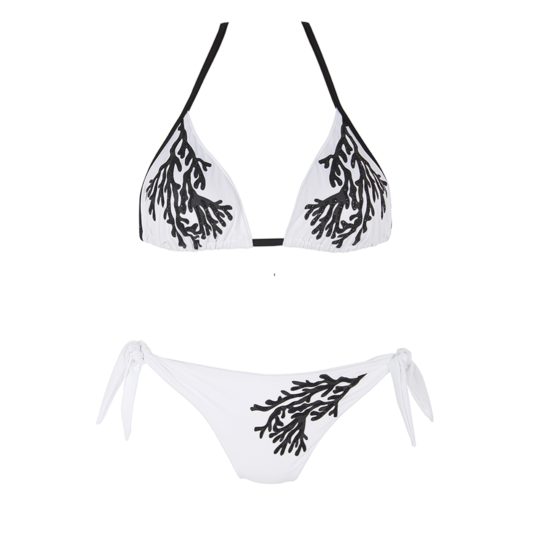 Joli maillot blanc avec impressions de coraux noirs en relief. Maillot confortable grâce à ses liens réglables